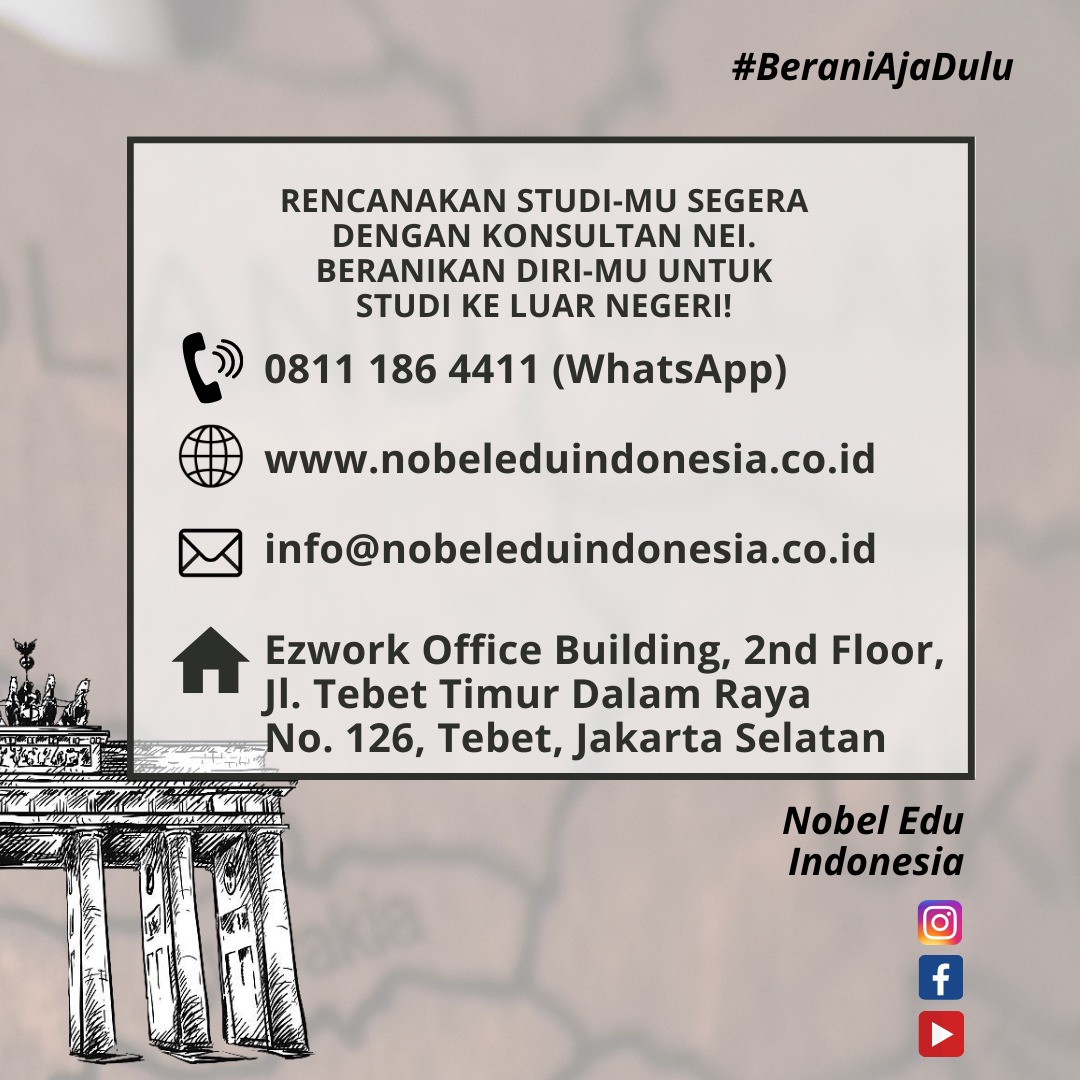 Follow @nobeleduindonesia untuk dapatkan informasi mengenai studi ke luar negeri